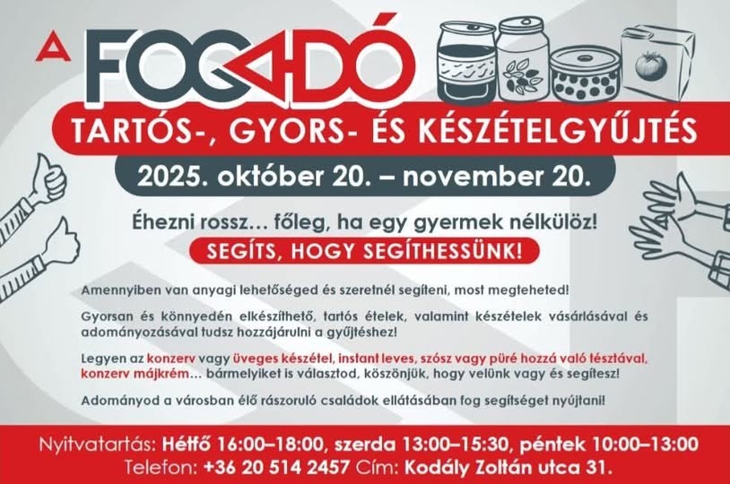 Október 20. és november 20. között várjuk felajánlásaikat.